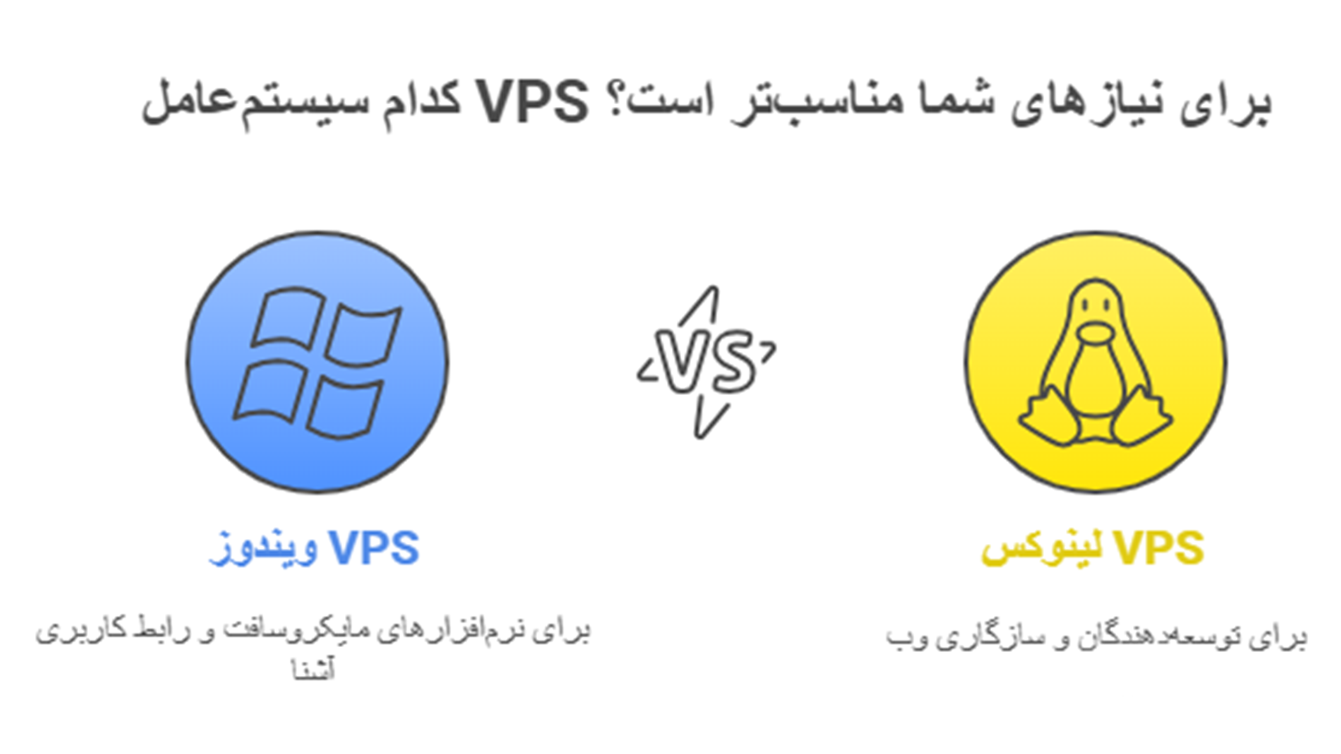 • اولین معیار انتخاب، سیستم‌عامل است: اگر از نرم‌افزارهای مبتنی بر ویندوز استفاده می‌کنید، Windows VPS گزینۀ مناسب‌تری است؛ اما اگر به دنبال سرعت، امنیت و کنترل بیشتر با هزینه‌ی کمتر هستید، Linux VPS انتخاب بهتری خواهد بود.